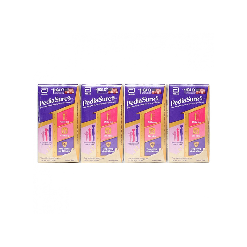 Sữa nước PediaSure BA vị vani 110ml là thực phẩm dinh dưỡng y học phù hợp cho trẻ trong giai đoạn 1 – 10 tuổi, các trường hợp tăng trưởng kém như nhẹ cân, thấp còi, suy dinh dưỡng, hay ốm, trẻ biếng ăn, có nhu cầu năng lượng tăng cao. Sản phẩm với nguồn dinh dưỡng cân đối, đã được chứng minh lâm sàng giúp trẻ tăng trưởng tốt đồng thời về chiều cao, cân nặng và sức đề kháng.