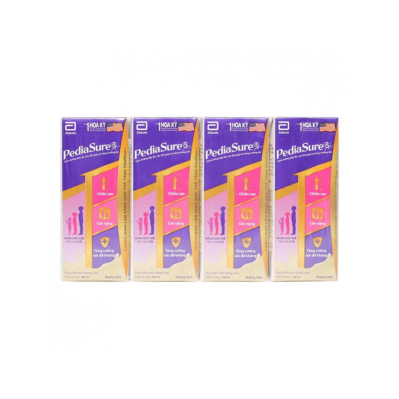 Sữa nước PediaSure BA vị vani 180ml là thực phẩm dinh dưỡng y học phù hợp cho trẻ trong giai đoạn 1 – 10 tuổi, các trường hợp tăng trưởng kém như nhẹ cân, thấp còi, suy dinh dưỡng, hay ốm, trẻ biếng ăn, có nhu cầu năng lượng tăng cao. Sản phẩm với nguồn dinh dưỡng cân đối, đã được chứng minh lâm sàng giúp trẻ tăng trưởng tốt đồng thời về chiều cao, cân nặng và sức đề kháng.